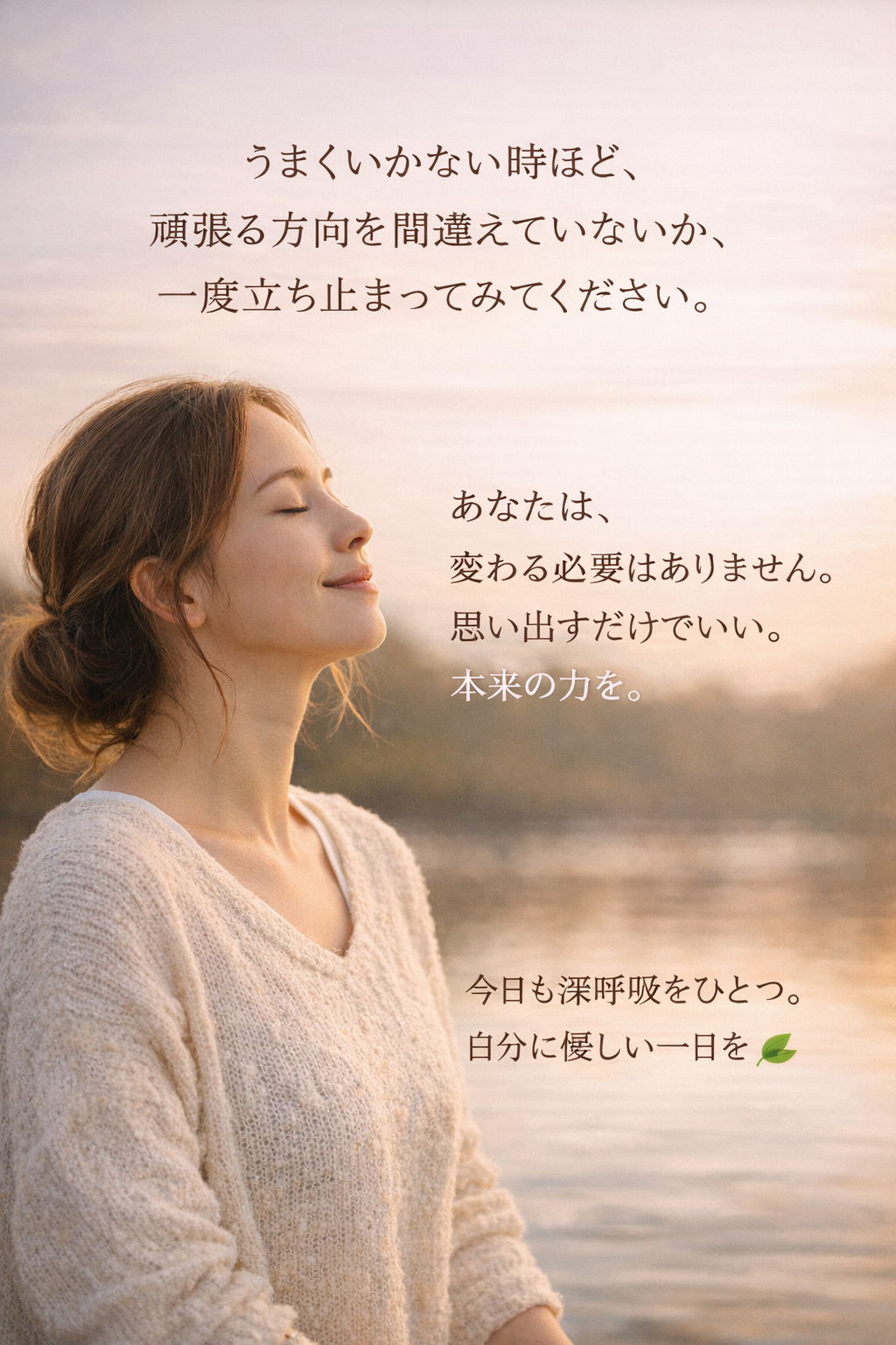 たった数分、 呼吸に意識を向けるだけで、 心は静まり、 本来の自分の感覚が戻ってくる